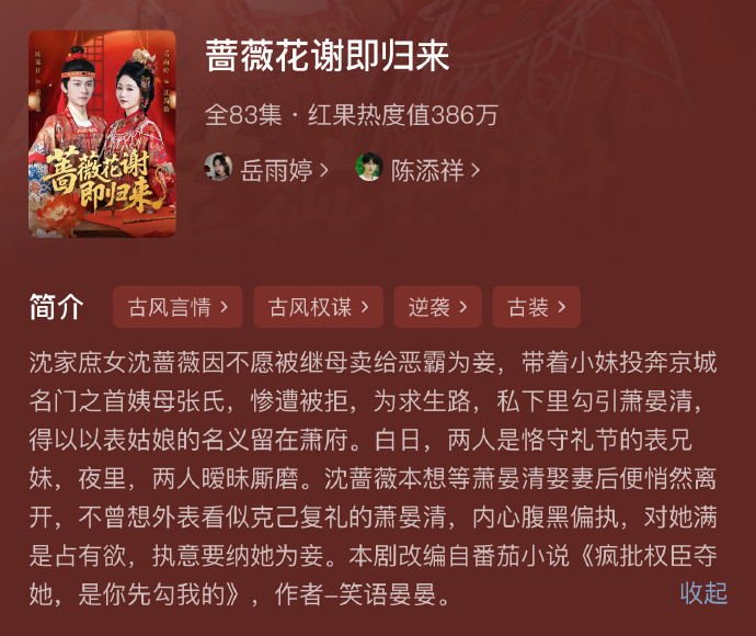 陈添祥岳雨婷新剧《蔷薇花谢即归来》腹黑偏执嫡长子✖妖娆娇美庶女 栏目:影视资源 作者:admin888 时间:2025-06-04 13:38:06 链接:D: https://pan.baidu.com/s/1QwaxDxFJ8_aKgShtqyt94Q?pwd=n6pg提取码: n6pg K:https://pan.quark.cn/s/ce6aa43a6b46